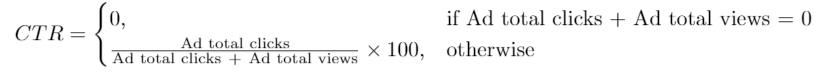 Performance of the Ad is measured using Click-Through Rate (CTR) where: